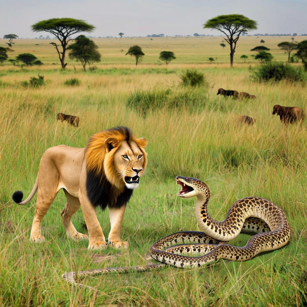 Лев против змеи в дикой природе — захватывающая встреча двух представителей животного мира! В естественной среде обитания, в одном из уголков заповедника Крюгера, могучий лев весом до 250 килограммов и с силой укуса около 650 фунтов на квадратный дюйм сталкивается с опасной змеей. Лев проявляет живой интерес и осторожно приближается к змее, которая в ответ пытается защититься, поднимаясь вверх и демонстрируя свою угрозу. Испуганный таким поведением, лев решает отступить, понимая, что змея может быть ядовитой и опасной для него. Эта встреча — яркое напоминание о том, как в дикой природе даже самые сильные животные проявляют осторожность и уважение к другим обитателям.