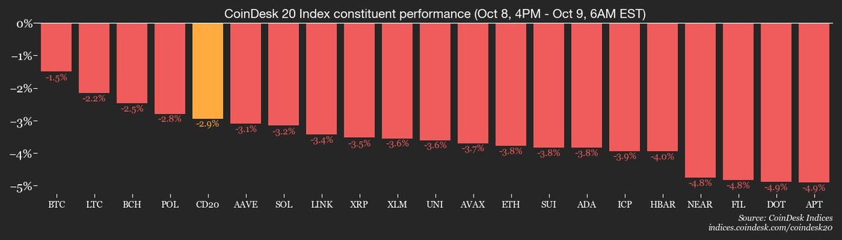 BTC стирает всплеск в среду, JPM предупреждает о крахе акций: Crypto Daybook Americas Ваш образ на день вперед на 9 октября 2025 года 📢 Подписаться на канал • 🔗 Источник