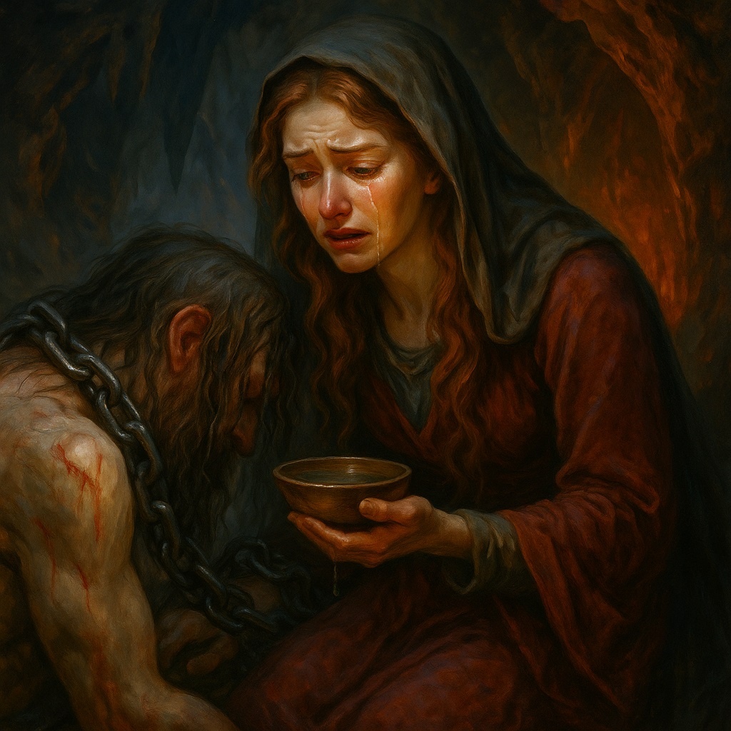 Когда чаша наполнялась, Сигюн уходила на мгновение, чтобы вылить её,