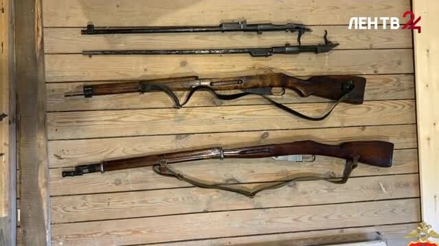 Возбуждено уголовное дело по статье о незаконном обороте оружия. Три винтовки различных моделей, ленту с патронами, гранату, штык-ножи и каски, предположительно, времен Великой Отечественной войны нашли в доме и сарае жителя поселка Новинка в Выборгском районе Ленобласти. Полицейские уверены, что мужчина является так называемым черным копателем. Возбуждено уголовное дело по статье о незаконном обороте оружия. Экспертиза уже показала, что изъятая иностранная граната пригодна для взрыва. Исследование остальных предметов продолжается.