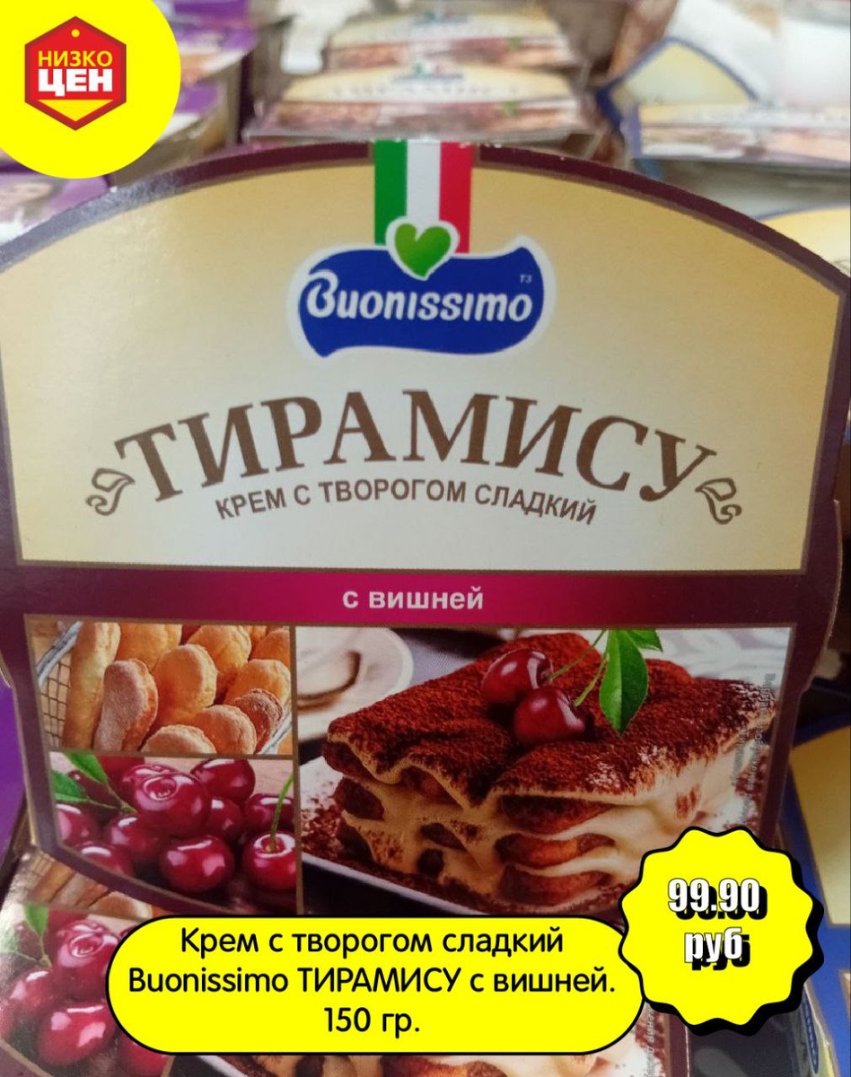 Даже многие итальянцы не знают, что их знаменитый на весь мир десерт тирамису обязан своим происхождением свободным нравам городка Тревизо на северо-востоке Италии. Сегодня там расположены штаб-квартиры Benetton и De'Longi, а когда-то... Долгие века этот городок считался «Итальянским королевством счастья и секса». Легенда гласит, что каждое воскресенье (единственный выходной у лупанариев) клиенты публичных домов по-дружески приходили к девицам, приносили кто что мог и устраивали совместные обеды. Печенье Савоярди, творожный крем Маскарпоне... В какой-то момент всё это смешалось, присыпалось кофе и получился оригинальный десерт. Экспериментальным путём выяснилось, что он является неплохим афродизиаком и весёлые девицы прозвали его «Тяни меня вверх» (Тирамису). Однако, средневековой Виагрой десерт не стал. Зато, завоевал популярность и любовь как одна из лучших сладостей во всём мире. В НИЗКОЦЕН новинки от Buonissimo!