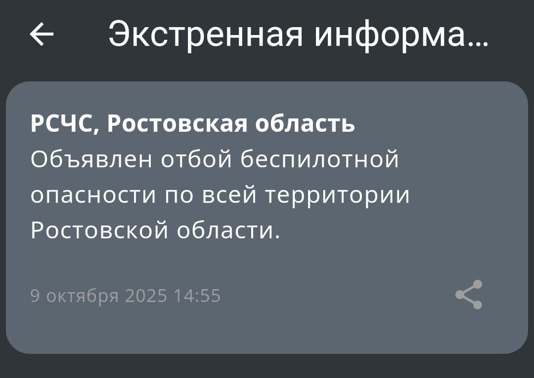 В ответ на пост ❗️Отбой беспилотной опасности в Ростовской области