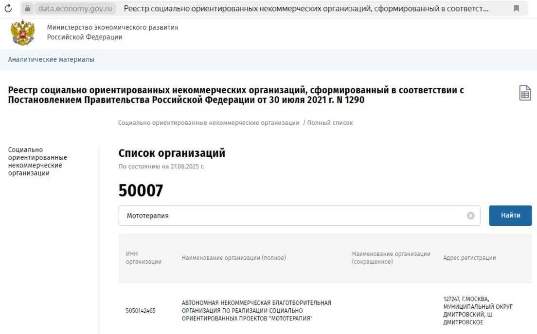 В этом году в Мототерапии произошло столько событий. И все они разные. Бывали и безрадостные, но случались и хорошие и их, к счастью, большинство. Одной из таких позитивных историй мы хотим с вами поделиться. В этом году Мототерапию включили в реестр социально ориентированных некоммерческих организаций. А что это значит? А это значит, что мы можем получать от государства ещё больше поддержки, например, гранты, субсидии и иные виды финансовой помощи. Плюс, мы можем рассчитывать на поддержку в области дополнительного профессионального образования для наших волонтёров. Ну, и, конечно, нам доступны льготы по уплате налогов и сборов. Но самое приятное, что те юридические лица, которые нам оказывают благотворительную материальную помощь, также получают возможность пользоваться льготами по уплате налогов и сборов и налоговыми вычетами. Надеемся, что это привлечёт ещё больше благотворителей и поможет нам получать ещё больше помощи и поддержки, которые мы везём нашим подопечным. Это ещё оди