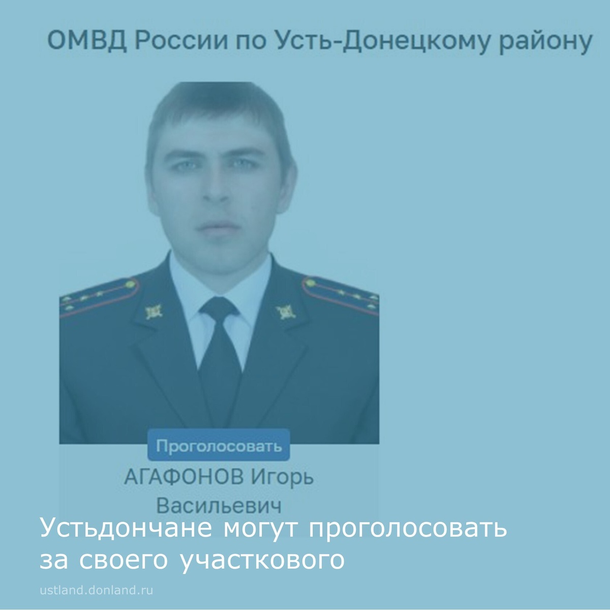 С 7 по16 октября проходит второй региональный этап конкурса «Народный участковый - 2025». Своего лучшего участкового выбирают жители каждого из регионов России. Наш район представляет участковый Агафонов Игорь Васильевич, который прошёл в региональный этап и теперь нам нужно поддержать его голосами. Сделать это просто: перейдите по ссылке https://clck.ru/3PeBCF , пролистните вниз, найдите анкету с фото нашего участкового, кликните на фото и действуйте согласно появляющимся подсказкам. #УстьДонецкийрайон #АдминистрацияУстьДонецкогорайона
