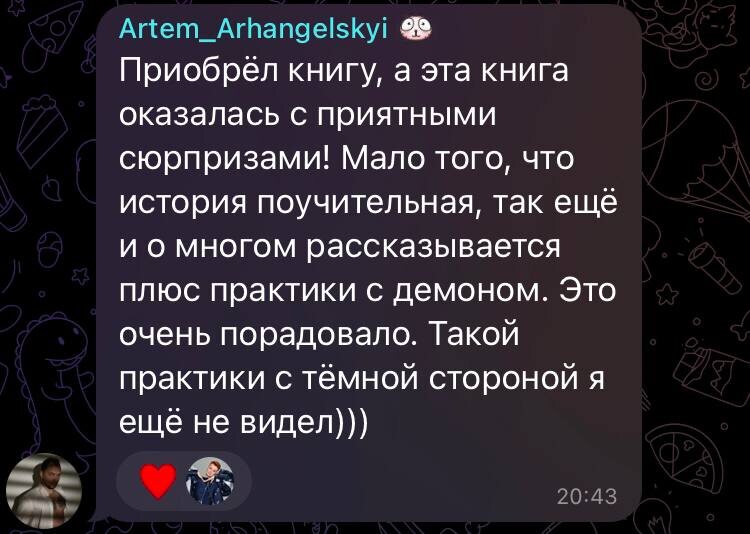 «Жребий желаний» – сыграй со своим демоном» никого не оставит равнодушным, я то знаю!;) Люблю читать ваши отзывы и делюсь откликами тех, кто уже успел соприкоснуться с собственными демонами и своими истинными желаниями✨ Упевайте приобрети, пока открыты продажи и книга есть в наличии! Читать книгу: https://miroslavabush.space?utm_source=tg