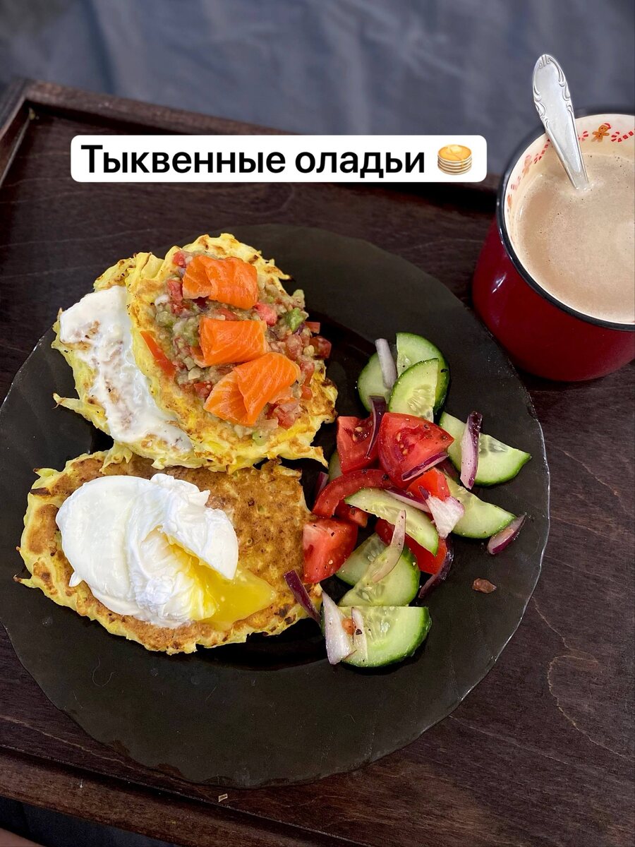 Тыквенные оладьи 🥞 1️⃣несладкую тыкву (~400гр) натереть на крупной тёрке 2️⃣добавить 2 яйца (расчет яиц- 1шт на 200гр) 3️⃣добавить 3 ст.л. муки без горки. Посолить 4️⃣выкладывать слоем не более 1см, жарить на огне ниже среднего Я подавала с гуакамоле и сёмгой. Рецепт гуакамоле : авокадо (мелко порубить и размять вилкой) + томат + красный лук + немного халапеньо и лимонный сок А так же с яйцом пашот (рецепт из инета, который с уксусом) и чесночным соусом