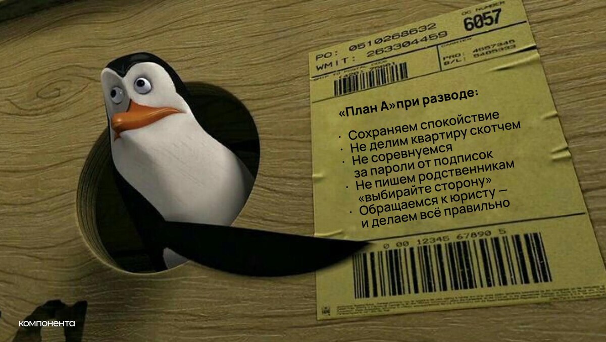«План А» при разводе лучше, чем «план Б». Развод — сложный и эмоционально насыщенный процесс. Важно сохранять спокойствие и не принимать импульсивных решений: делить квартиру скотчем, спорить за пароли от подписок или вовлекать родственников. Грамотное решение — обратиться к юристу. Профессиональная помощь помогает правильно оформить документы, выстроить стратегию раздела имущества и защитить ваши интересы на каждом этапе.