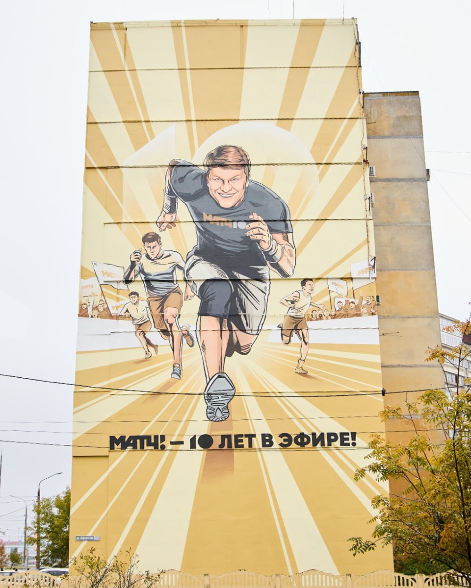 В Нижнем Новгороде появился масштабный мурал, посвященный десятилетию телеканала "Матч ТВ". Арт-объект разместился на фасаде девятиэтажного дома на улице Керченской, неподалеку от стадиона "Совкомбанк Арена", сообщили в телеграм-канале телеканала. Центральной фигурой композиции стал спортивный комментатор Дмитрий Губерниев, изображенный во главе забега. Этот образ символизирует движение вперед, энергию канала и стремление к новым вершинам спортивного вещания в России. Площадь мурала составила более 385 квадратных метров. Автором работы выступил нижегородский художник Алексей Гурнянский, известный своими проектами в жанре стрит-арта. Реализация проекта стала возможной благодаря поддержке губернатора Нижегородской области Глеба Никитина и регионального министерства спорта. Глава региона отметил, что в области активно развиваются как профессиональный спорт, так и массовое физкультурное движение. По его словам, более 60% жителей уже ведут активный образ жизни, а ежегодно в регионе проводит
