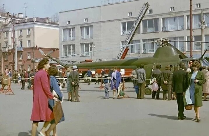 Выставка пожарной техники и вертолёта Ми-1 перед ЦУМом 1979 год 1920-е годы. Водонапорная башня, железнодорожный вокзал, территория химзавода и... корова. Фото музея кр. горка Перекресток будущих улиц Карболитовской и Станционной. Фото музея Красная горка и я его вижу впервые. Железнодорожную станцию Кемерово построили в селе Щеглово в 1915 году, после того как сюда провели ветку Транссибирской магистрали Размещалась она на строительной площадке коксохимзавода, улица Станционная. Здание вокзала открыли в деревянном одноэтажном строении площадью 120 «квадратов» в 1930 году. В 1941-1943 годах отсюда отправлялись на фронт в составе полков наши земляки. После войны здание вокзала переехало за завод «Карболит» (ныне «Токем») и теперь находится на современной улице Карболитовской, 2. В 1948-м началось пассажирское сообщение Кемерово — Москва (вероятно, ранее курсирование поездов ограничивалось лишь Сибирью). Развитие различных направлений обязывало к строительству нового, более современн
