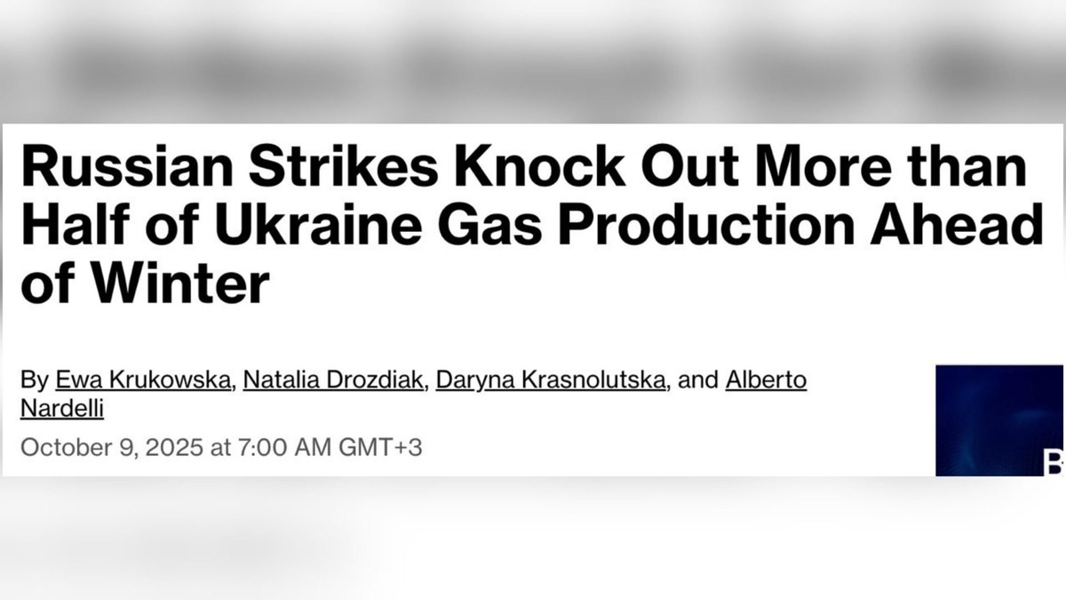 Bloomberg: Россия уничтожила ударами ракет и БпЛА 60% газодобычи Украины