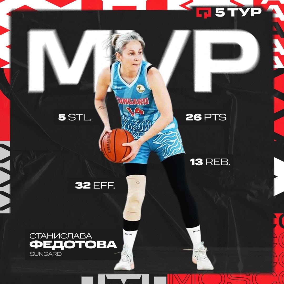 MVP WBL Федотова Станислава (Sungard) vs Alliance Квалификация, 5 тур 79:51 26 очков, 13 подборов, 5 перехватов, 32 эффективность После двух неудачных в плане бросковой эффективности игр Федотова полностью реабилитировалась в матче с "Альянсом". Станислава стала лучшей в команде по набранным очкам, подборам и перехватам, особенно впечатлив во второй четверти. Лидер Sungard набрала за вторую четверть 15 очков, реализовав 6 из 7 двухочковых и 3 из 3 штрафных бросков. Ждем праймовую Стасю к плей-офф? 💯 - сто процентов! 1️⃣@ABL Moscow