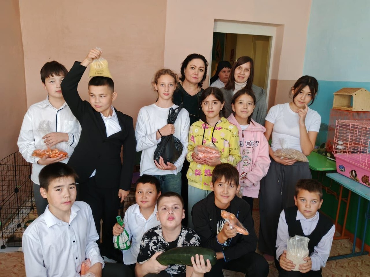 Учащиеся 5-гокласса школы №10 собрали корм крупы, зерно, овощи и фрукты для уголка живой природы Детского эколого-биологического центра
