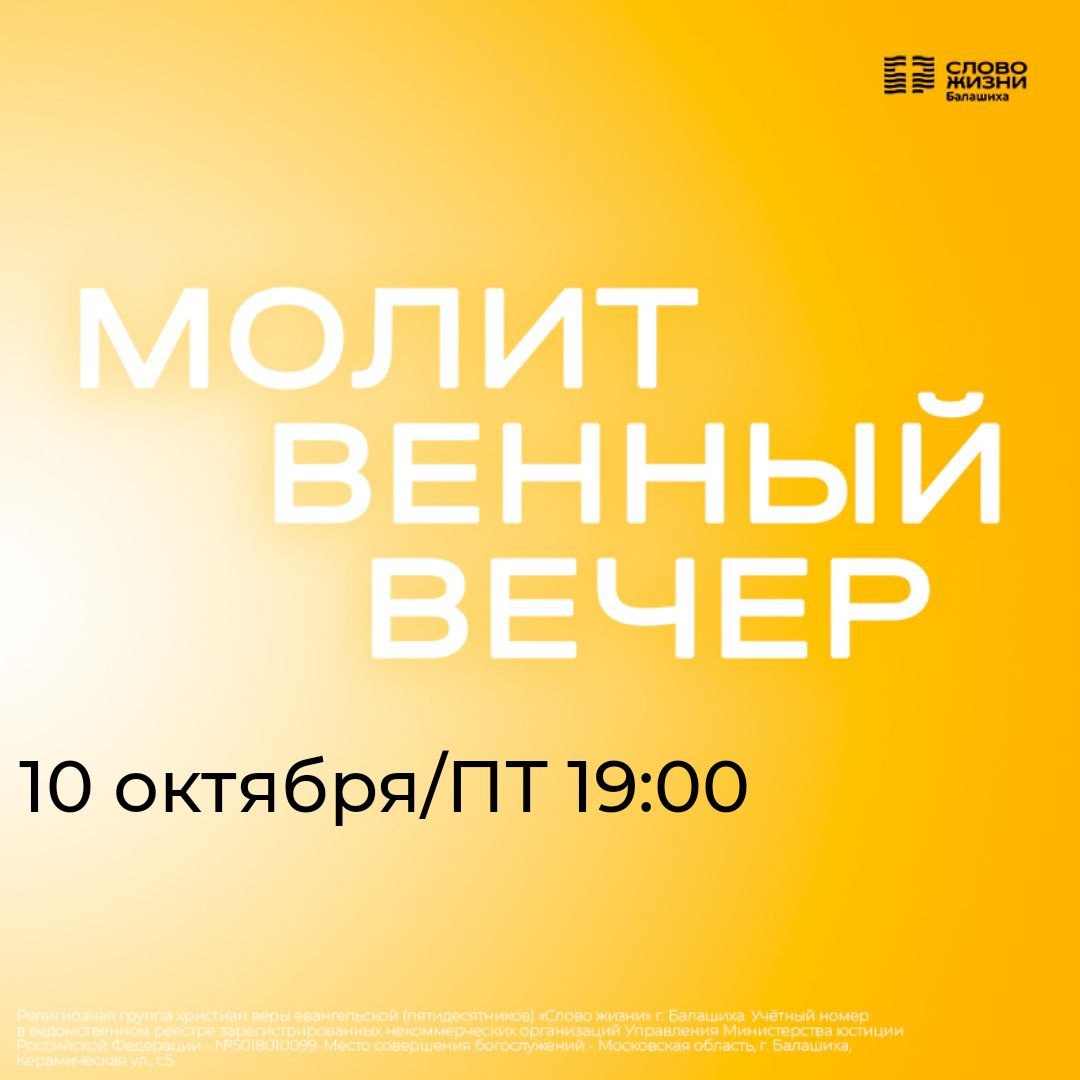 Приглашаем завтра, в пятницу 10 октября, на молитвенное служение в церкви! Начало в 19:00.