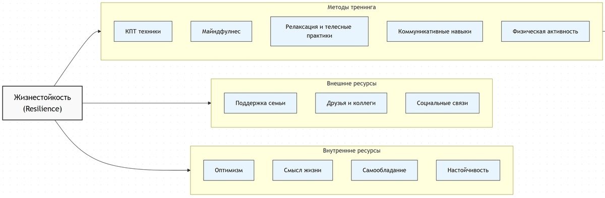 В качестве тренинга резилентности, которые помогают людям учиться управлять стрессом, можно рассматривать: