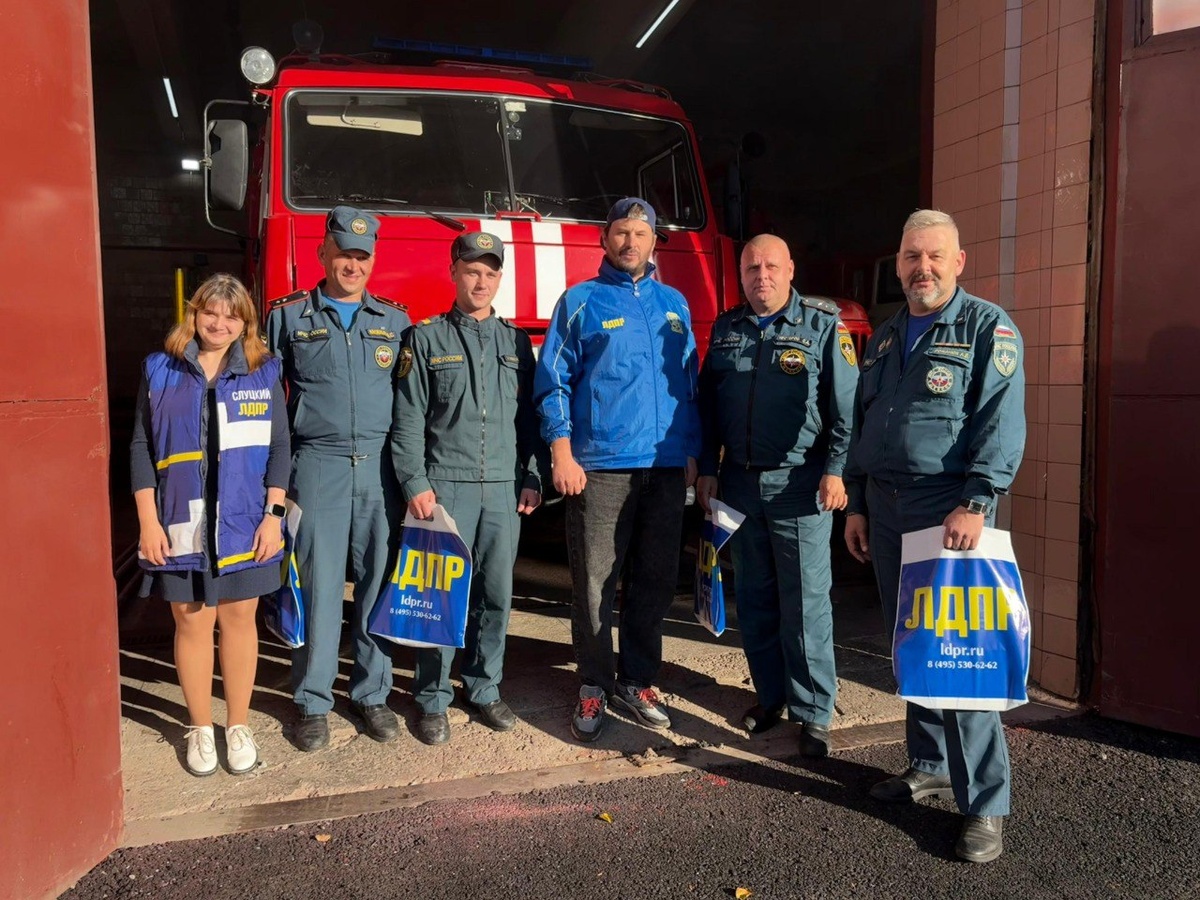 И сегодня руководитель Псковской молодежной организации ЛДПР Владимир Ефимов совместно с активистами партии поздравили сотрудников пожарной части города Пскова.