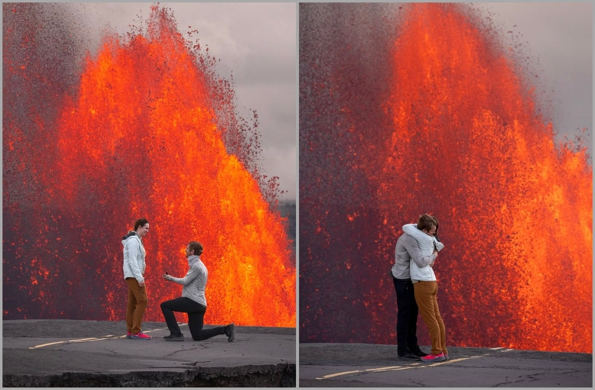 Фотограф сделал предложение девушке на фоне извергающегося вулкана на Гавайях
