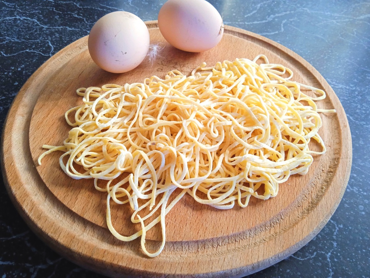 Ну что, мои дорогие, займемся сегодня настоящей кухонной магией? Речь пойдет не о том, чтобы просто сварить суп. Речь пойдет о том, чтобы вдохнуть в него душу. И начнется это волшебство с самого главного — с теста для домашней лапши. Этот процесс я называю «медитативное приготовление». Здесь не нужно спешить. Здесь нужно чувствовать. Чувствовать, как под вашими пальцами рождается не просто тесто, а то самое «детское счастье», аромат которого навсегда остался в памяти у каждого из нас. Помните этот вкус? Вкус воскресного обеда у бабушки, когда все большое и шумное семейство собиралось за одним столом. Это мы с вами сегодня и возродим. Ингредиенты для теста (расчет на 4 порции): Мука пшеничная высшего сорта — 300 г (и еще немного для подпыла) Яйца крупные — 3 шт. (именно они дадут тот самый насыщенный желтый цвет и упругость) Соль — 1 щепотка (без нее тесто будет безликим) Вода — 1-2 ст. ложки (может не потребоваться, смотрите по ситуации) Для супа: Куриный бульон — 2,5-3 литра (золотист