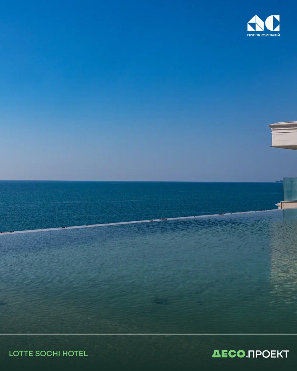 Инфинити-бассейн на крыше Lotte Sochi Hotel — впервые наполнился водой💧 Тестовые испытания — как репетиция симфонии перед премьерой. Вода скользит к горизонту, растворяясь в морской линии. С этой высоты Черное море будто приближается на вдох. 📸 На фото — реальный вид с борта бассейна. На высшей точке будущего отеля под тенистыми парусами также разместятся роскошные лаунджи для отдыха, бар с коктейлями и массажные столы среди зеленых субтропических растений. О каждом элементе — в следующих постах. Следите за деталями😉 #мыстроимсочи #девелоперсочи