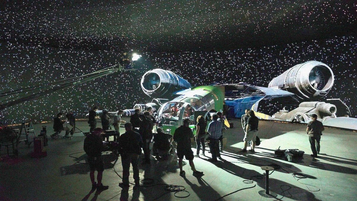 «Инновационному» процессу съёмок даже посвятили отдельный документальный сериал «Галерея Disney: Мандалорец». Там Фавро, в числе прочего утверждает, что большая часть сцен, снятых на фоне видеостен, вошла в финальный монтаж практически без обработки. Не стоит верить ему на слово. Судя по кадрам со съёмочной площадки, Джон дозированно использовал и построенные вручную декорации, и даже хромакей.