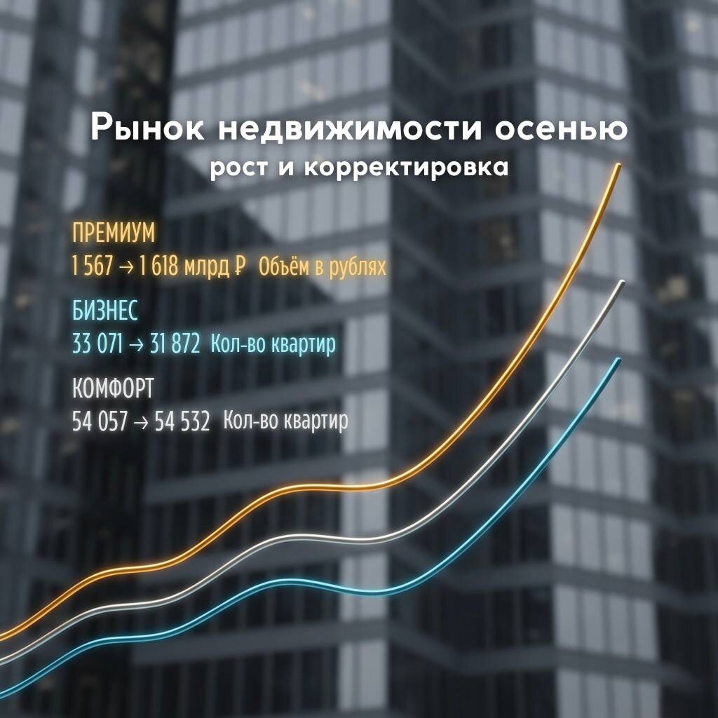 Медианная цена квартиры: 54 → 54,9 млн ₽ 💼 Бизнес-класс Количество квартир: 33 071 → 31 872