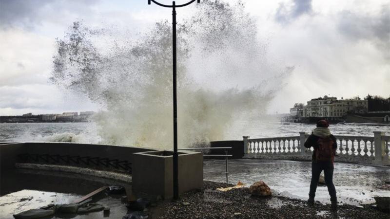 Холодный сильный ветер надвигается на Севастополь.