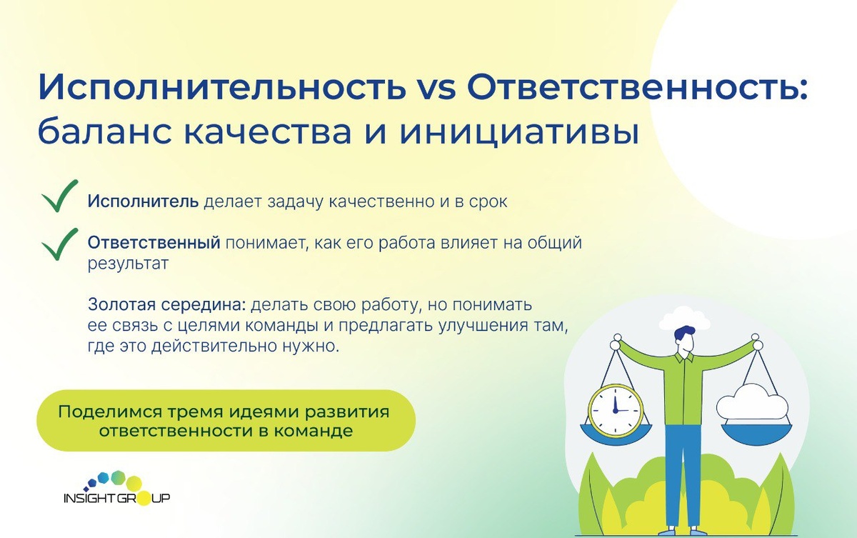 📎 Самый частый вопрос от руководителей: «Как сделать так, чтобы команда сама горела проектами?» Ответ — в системном развитии ответственности. Не требовать, а создавать условия и развивать сотрудников. ✔️ Получить программы по развитию сотрудников от Инсайт Груп