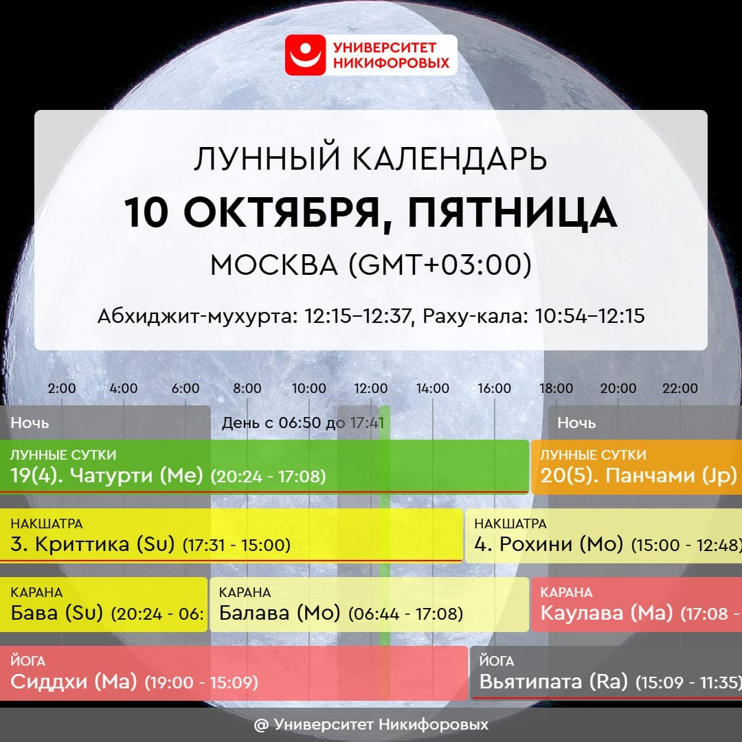 10 ОКТЯБРЯ, ПЯТНИЦА День жестких энергий, он дает возможность радикального избавления, отсечения ненужного и отжившего. Но важно адекватно оценить, что попадает в эту категорию – есть риск рубануть с плеча по живому, особенно в вопросах партнерства. Можно успешно завершить то, что тяготит, истощает. Хорошо будет провести очищение пространства огнем или зажечь свечи – последние лучше не оставлять без присмотра. Можно написать список того, от чего вы хотели бы избавиться, – это касается личных качеств и привычек – и сжечь. Огонь как первоэлемент способствует трансформационным процессам. Одной из гармонизаций дня может стать приготовление фруктового десерта. Потом замечательно будет угостить им кого-либо из вашего окружения. На время после 15:09 лучше ничего не планировать, да и в целом весь день располагает лишь к рутинным делам и решению текущих задач.