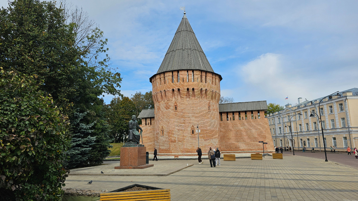 В Смоленске, в 1991 году, возле первой из отреставрированных крепостных башен − Громовой, был установлен памятник выдающемуся русскому зодчему 16-го века Федору Савельевичу Коню. Федор Конь в 1585−1593 годах построил каменные стены и башни «Белого города» в Москве, а затем - крупнейшую крепость России – Смоленскую крепостную стену в 1596−1602 годах. Стены и башни «Белого города» снесли в 18-м веке, а Смоленская крепость стоит поныне, являясь памятником архитектуры федерального значения. Известная смоленская писательница В.А. Звездаева назвала Ф.Коня «фигурой загадочной из загадочных». И действительно, его личность и биография обросли множеством устных преданий, ведь не установлены даже годы его жизни, и настоящих изображений Ф.Коня не сохранилось. На памятнике скульптор О. Комов отобразил свое видение, собирательный образ выдающегося русского зодчего. На самом деле Ф.Конь вряд ли носил такую одежду, к моменту строительства крепости человеком он был состоятельным. В царской грамот