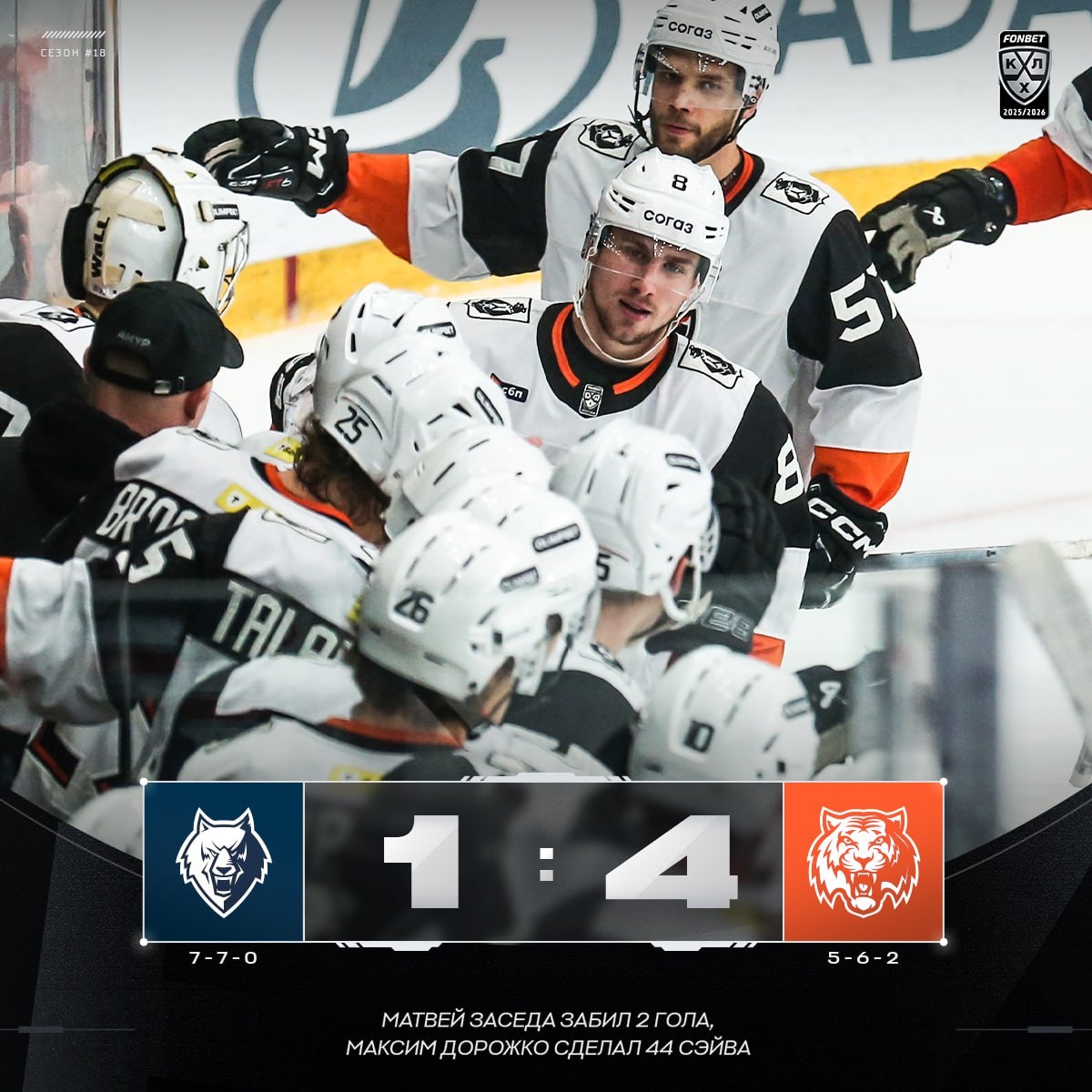 🐯 Дубль Матвея Заседы помог «Амуру» впервые в сезоне одержать две победы подряд! #ФонбетКХЛ