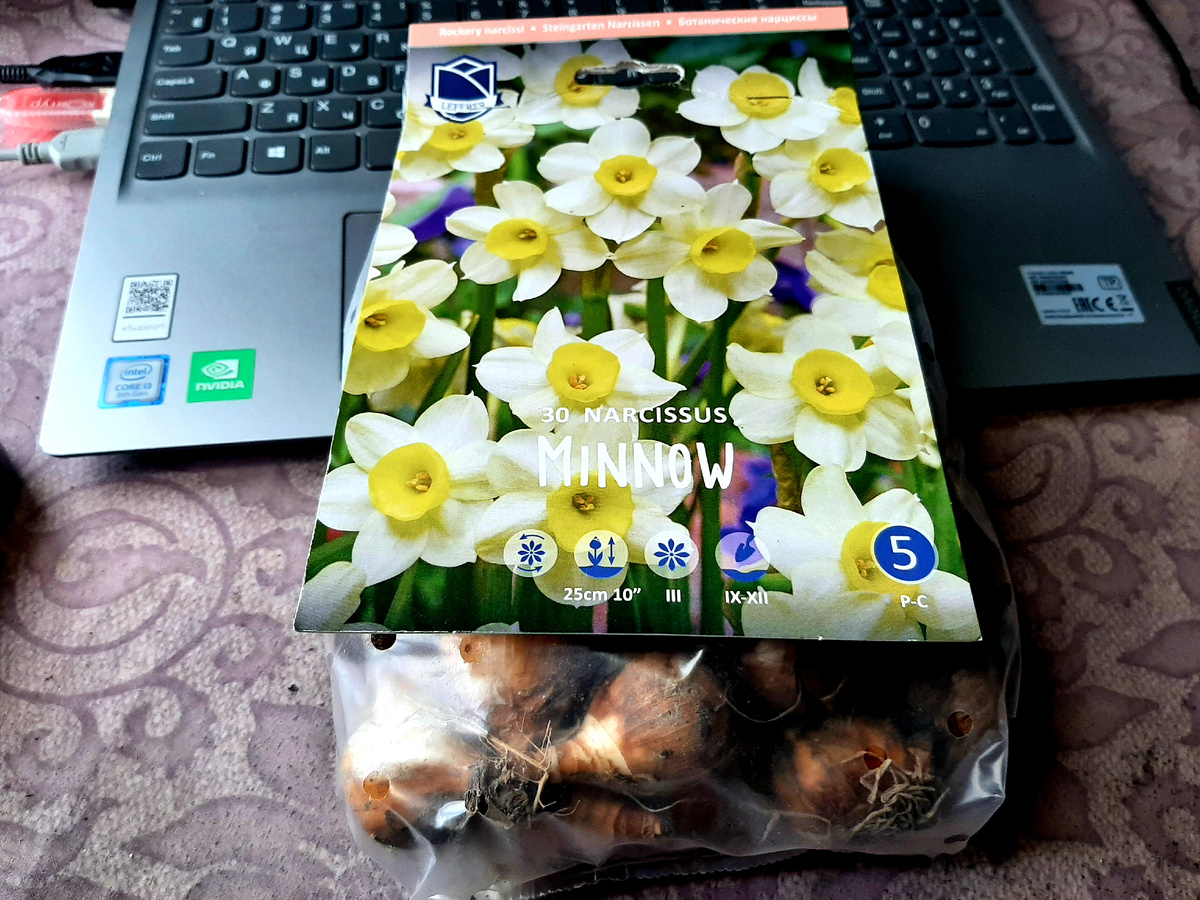 Ну, что можно отнести к радостям, в моём случае это вовремя полученные посылки, содержимое которой удалось закопать в период кратковременно благоприятных погодных условий. А таких посылок было пока всего две. Одна от «Острова цветов», вторая от «Первых семян». Половина содержимого от «Первых семян» была закуплена по целевому направлению- на озеленение территории, прилегающей к моему месту работы. Сегодня, в тандеме с главным бухгалтером и женой одного из учредителей территория была озеленена/заселена. Отчитываюсь, что были посажены примерно 220 луковиц нарциссов, 120 луковиц тюльпанов и 50 штук декоративного лука. После этого цветник в 90 квадратных метров уже не показался таким уж большим, так как практически половину площади мы засадили и стало гораздо проще планировать остальные посадки. Но тут я столкнулась с категоричным отказом дальнейшего финансирования. Может быть, немного отступлю от темы моего канала, но просто констатирую сложившуюся ситуацию на рынке- в связи с грозящими и