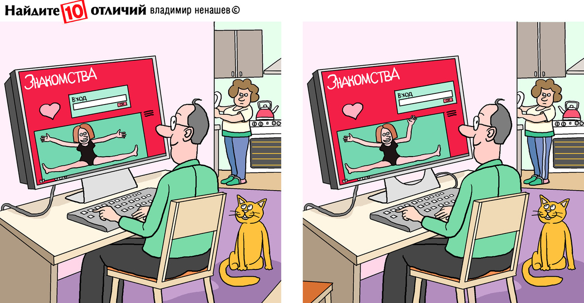 10 отличий. Тест на внимание про знакомства в интернете. Позитив.