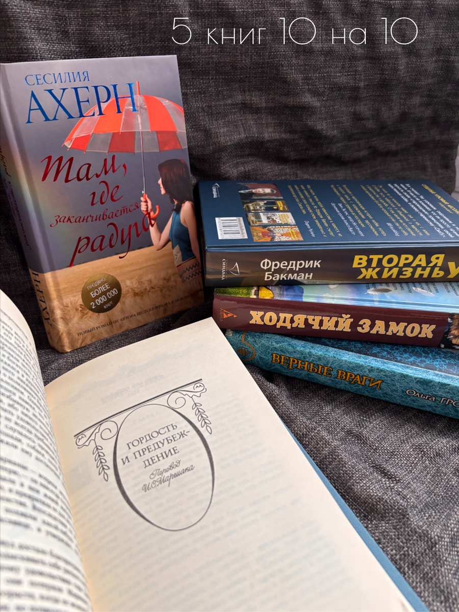 Увидела этот книжный тэг и очень захотелось посмотреть, есть ли у меня книги подходящие под заданные параметры 😁 С приложением некоторого усилия, я все таки смогла подобрать книги из моей библиотеки 😆 5 книг на 10 из 10 1. Дж.Остен «Гордость и предубеждение» Любовь на все времена. Могу перечитывать эту книгу бесконечное количество раз. И вам советую. 2. О.Громыко «Верные враги» Потрясающее фэнтези. Здесь есть все: и приключения, интересный мир, потрясающие главные герои, намек на любовную линию, протрясающий юмор. 3. Ф. Бакман «Вторая жизнь Уве» Книга попала в самое сердечко. Ее невозможно не полюбить. 4. Д.У.Джонс «Ходячий замок» Еще одна сказочная история, которая просто завораживает. От нее невозможно оторваться. 5. С.Ахерн «Там, где заканчивается радуга» Роман о сложных судьбах, о поиске себя. Каждый раз читая не могу не плакать, так сильно резонирует мне эта история. 4 книги, которые хочу почитать 1. И.А.Гончаров «Обрыв» Последняя книга из трилогии Гончарова. Перечитывая «