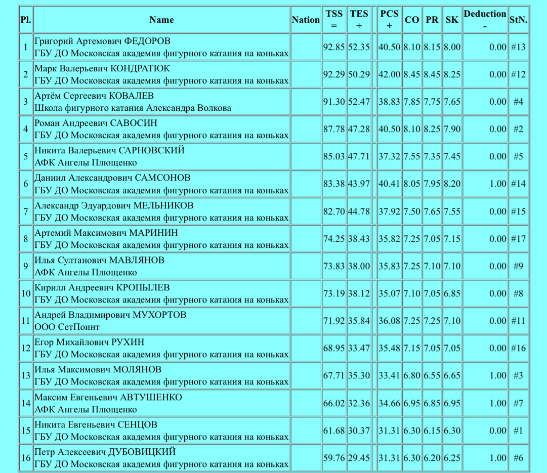 Чемпионат Москвы. Мужчины, короткие программы. Григорий Федоров — первый, Марк Кондратюк — второй, Артём Ковалев — третий