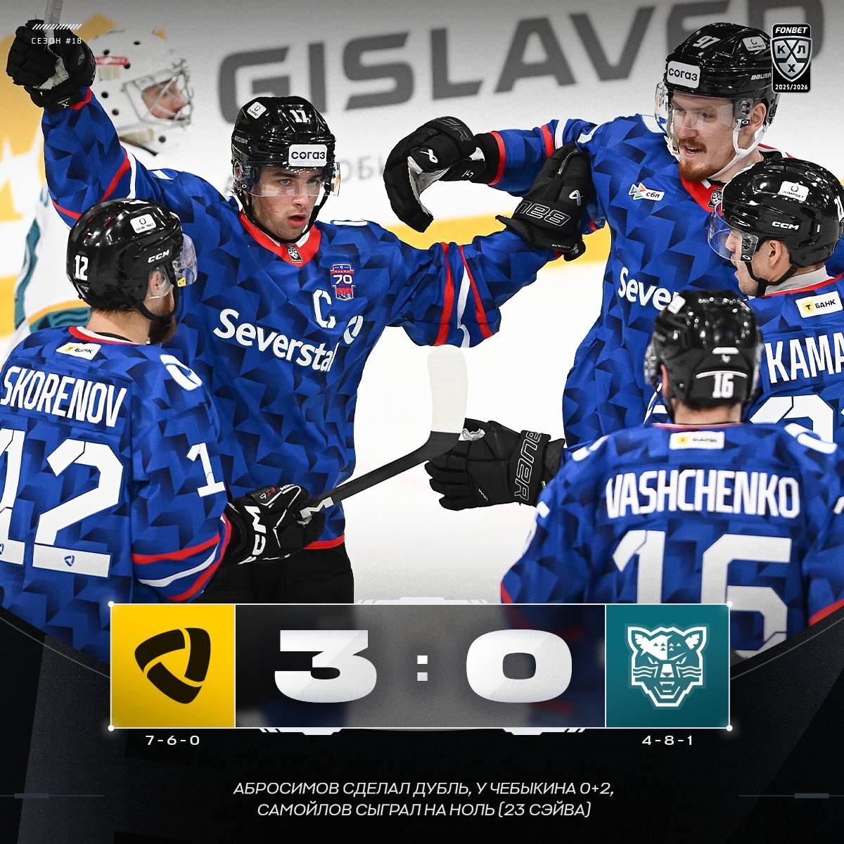 🟡 Дубль Абросимова и «сухарь» Самойлова принесли «Северстали» победу над ХК «Сочи»! #ФонбетКХЛ