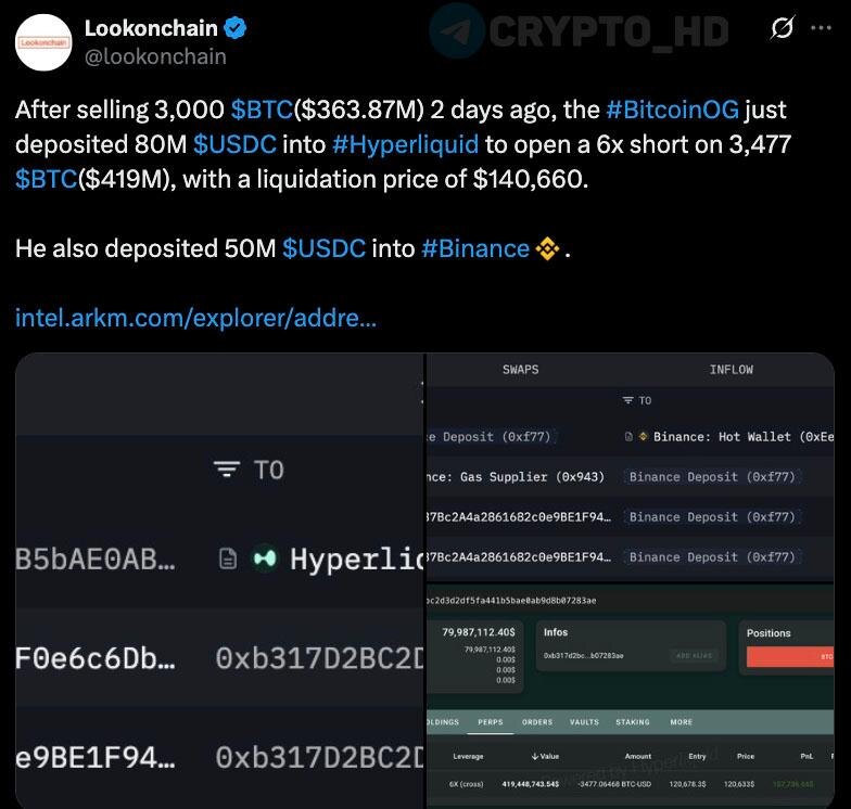 Напомним, недавно он вновь активизировался и завел $363,000,000 на биржу Hyper Liquid + вновь начал продавать Биткоин.