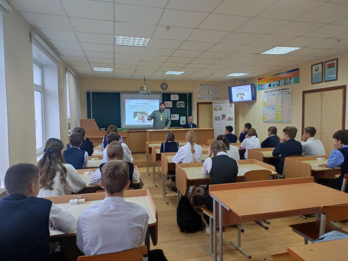 3 октября учащиеся 8 класса Березинской гимназии приняли участие в заседании дискуссионного клуба «Точка зрения», посвящённом теме «Родители и дети. Почитание в святом Евангелии». В мероприятии принял участие благочинный Березинского церковного округа протоиерей Илья Гончарук. В ходе живого и содержательного диалога школьники, педагоги и священнослужитель обсудили ключевые аспекты взаимоотношений между родителями и детьми, основанные на евангельских заповедях. Особое внимание было уделено значению почитания родителей как одной из важнейших христианских добродетелей, а также современным вызовам, с которыми сталкиваются семьи в вопросах взаимопонимания, уважения и духовного воспитания.