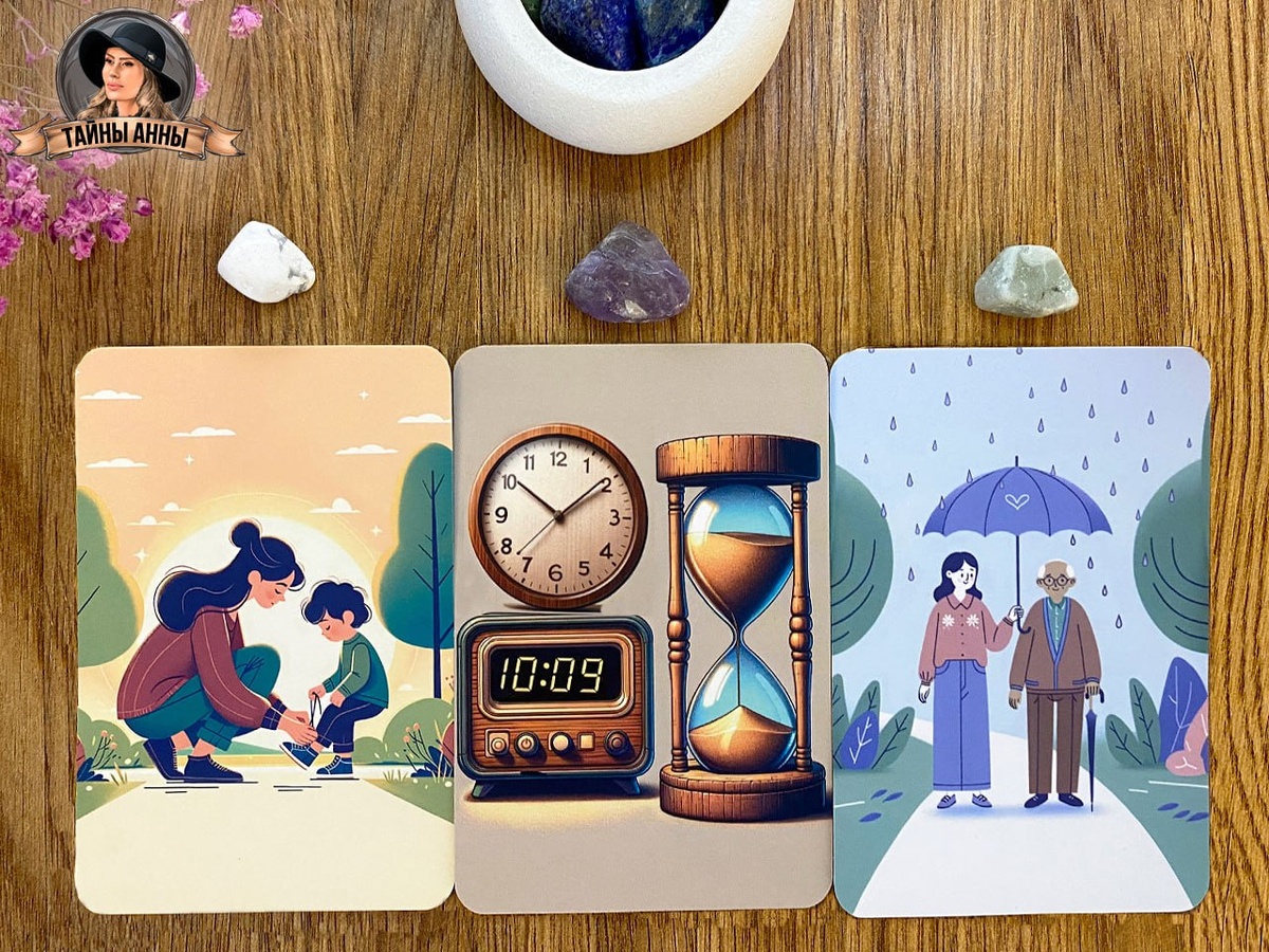 🌙Я с благодарностью принимаю заботу близких... На сегодня всё! Завтра будет новый день и новые расклады! А пока — метафорические карты этого вечера на сон грядущий. Подумайте, о том, что они вам навевают... Аффирмация на вечер и утро: «Я с благодарностью принимаю заботу близких, ценю каждое мгновение жизни и с любовью возвращаю полученное тепло...» ◈ Родительская забота. Именно родители закладывают фундамент нашей личности, создают ощущение защищённости и доверия к миру. Через повседневные ритуалы — завязанные шнурки, поправленный воротничок, тёплый обед — передаётся главное послание: «ты важен, ты любим, мы о тебе позаботимся». И эта забота становится невидимым щитом, который защищает нас всю жизнь, даже когда родителей уже нет рядом... ◈ Неумолимое течение времени. Время не останавливается ни на секунду, превращая младенцев в родителей, а родителей — в стариков, нуждающихся в поддержке. Но в этом неумолимом движении есть своя красота и мудрость. Каждый возраст приносит свои дары