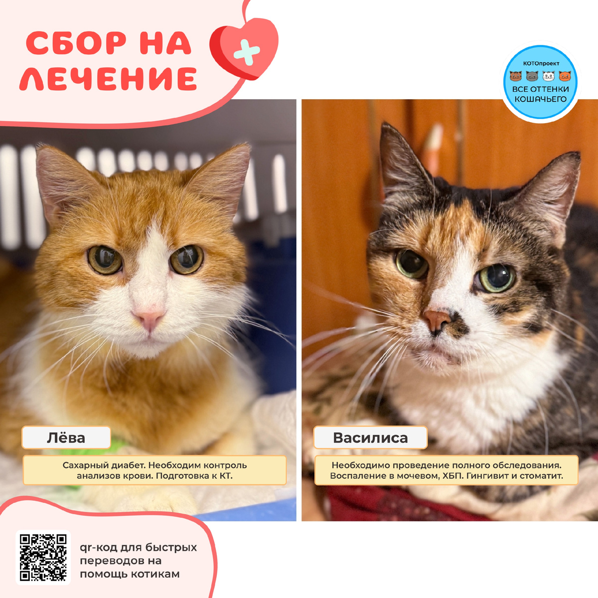Василиса и Лёва записаны на прием к нефрологу в субботу (11.10.25). Просим по возможности поучаствовать в судьбе наших подопечных! Плохо кушает, как сухой, так и влажный корм. Необходимо выполнить контрольные анализы крови для отслеживания динамики и контроля анемии. Дополнительно планируем сделать УЗИ сердца, чтобы был допуск к наркозу на КТ / стоматологический рентген. 📋 На субботу запланировано: