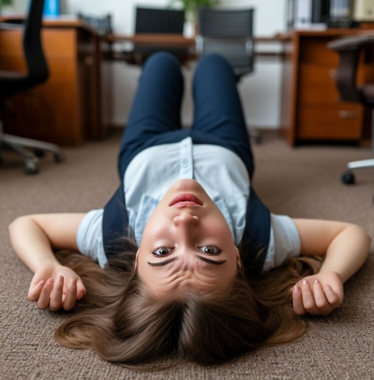 В центре этого хаоса, в узком проходе между двумя стандартными офисными столами, на не слишком чистом ковровом покрытии лежала молодая девушка. Была в сознании, но, судя по затуманенному взгляду, была явно дезориентирована в пространстве и времени. Возле неё, стараясь прикрыть её тело от любопытных взглядов с помощью собственной куртки, сидела другая девушка, чье лицо выражало не столько ужас, сколько усталую, почти профессиональную озабоченность, что сразу выделяло её из числа перепуганных офисных работников.