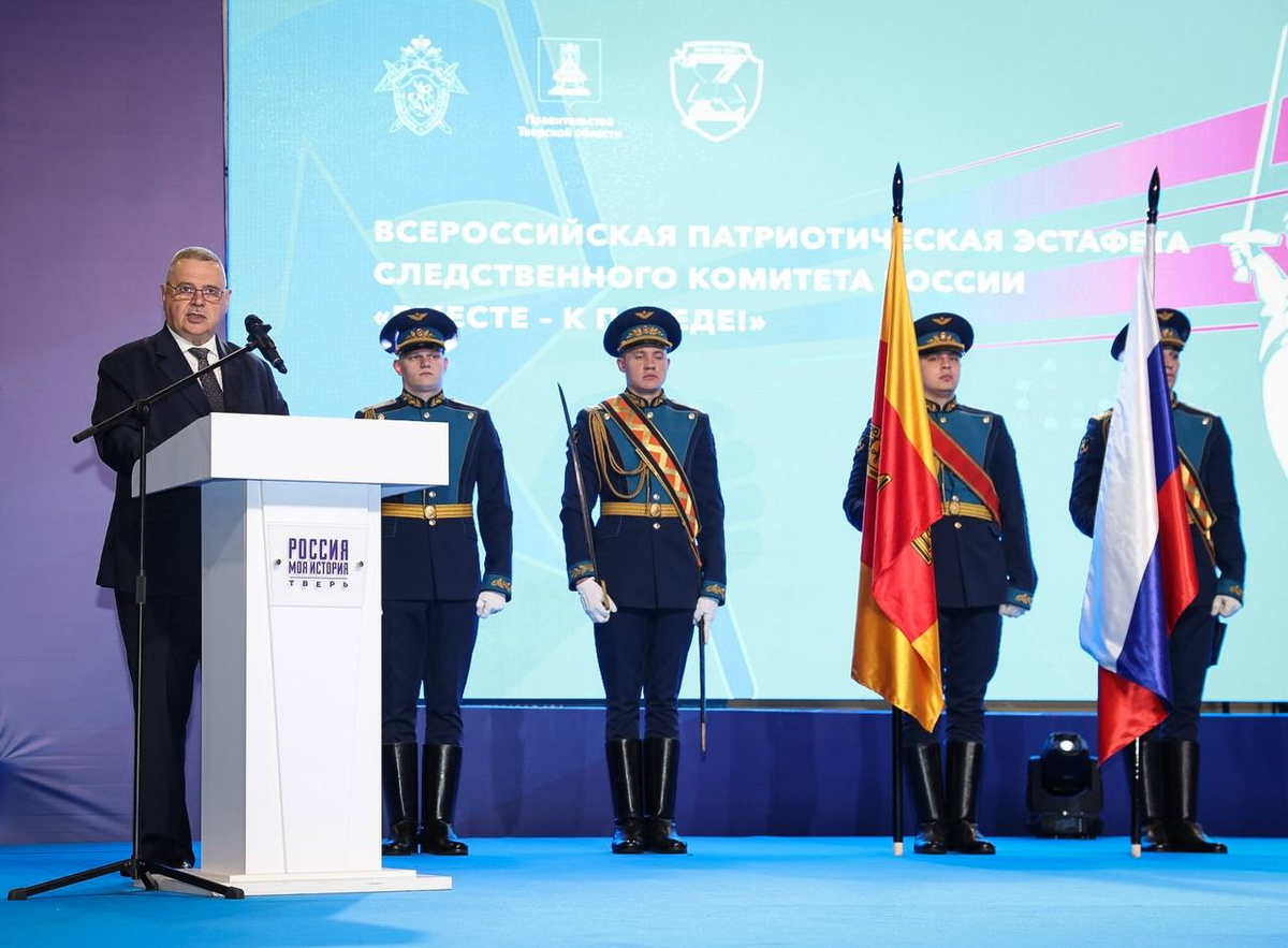 Тверской регион стал завершающим участником Всероссийской патриотической эстафеты СК России «Вместе – к Победе!», посвященной 80-летию Победы в Великой Отечественной войне 1941-1945 гг. Это мероприятие — живой урок истории Великой Отечественной войны и сохранения памяти о её героях. Проходя от города к городу, от поколения к поколению, эстафета дала молодёжи возможность прикоснуться к реальным историям, встретиться с ветеранами, познакомиться с документами и увидеть карту подвигов своих земляков. Старт эстафеты был дан 2 мая 2024 года Председателем СК России А.И. Бастрыкиным у Кремлевской стены. Символ ведомственной эстафеты с изображением скульптуры «Родина-мать зовет!» проследовал по городам, напоминая потомкам победителей о подвигах предков. На сцене мультимедийного исторического парка «Россия – моя история» заместитель Председателя Следственного комитета Российской Федерации А.В. Федоров обратился к участникам эстафеты: «По поручению Председателя СК России А.И. Бастрыкина позд
