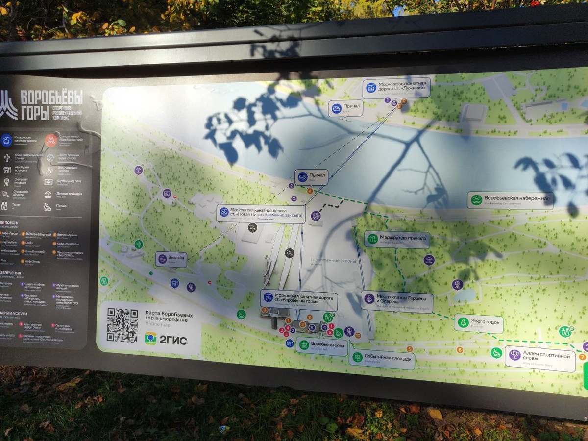 Мы поехали погулять на Воробьевы горы. Я была поражена насколько они изменились. Речь, конечно, не просто про набережную, а вот про все остальное. Удобные пешеходные дорожки, кафе, лавочки, островки информации, например про обитаемые птицы.