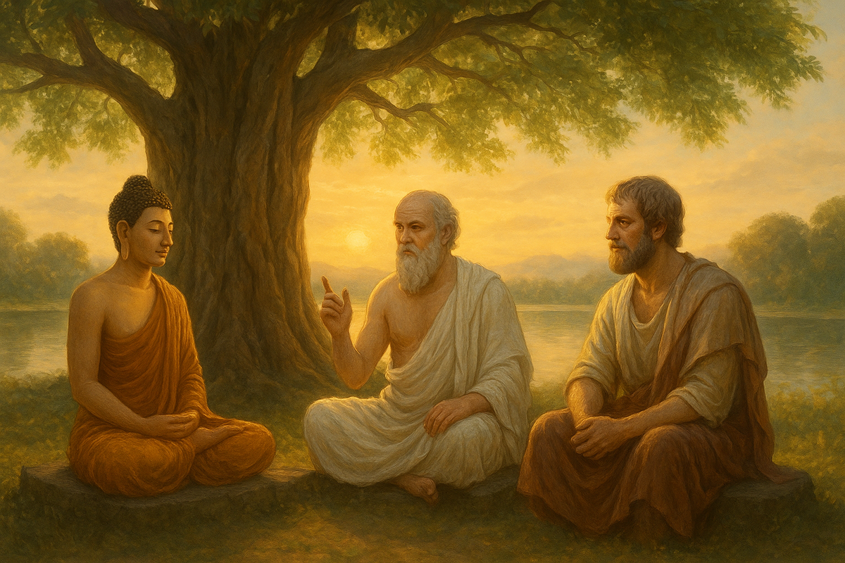 Когда шум мира стал невыносим, а люди перестали слышать друг друга — даже споря о священном и научном, — трое великих решили встретиться под старым деревом.