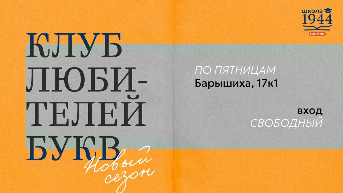 10 октября стартует новый сезон «Клуба любителей букв»! 📚 Мы вновь начинаем проводить литературные встречи для учеников 12–17 лет. Условие одно — любить словесность так же, как любим её мы! 📆 Когда: каждую пятницу 📍 Где: ул. Барышиха, 17к1, кабинет директора Что будем делать: — читать и неформально обсуждать произведения, которые не входят в школьную программу; — показывать своё творчество; — устраивать сессии, на которых будем писать стихи и прозу; — обмениваться знаниями, мнениями и полезными ресурсами о языке и литературе. ✅ Заранее записываться не нужно! #ДОНМ #ШколыКолледжиМосквы