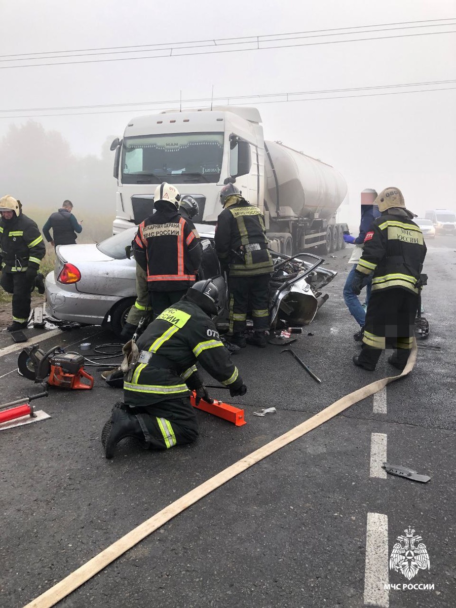 Рыбинские пожарные спасли людей из покореженной легковушки