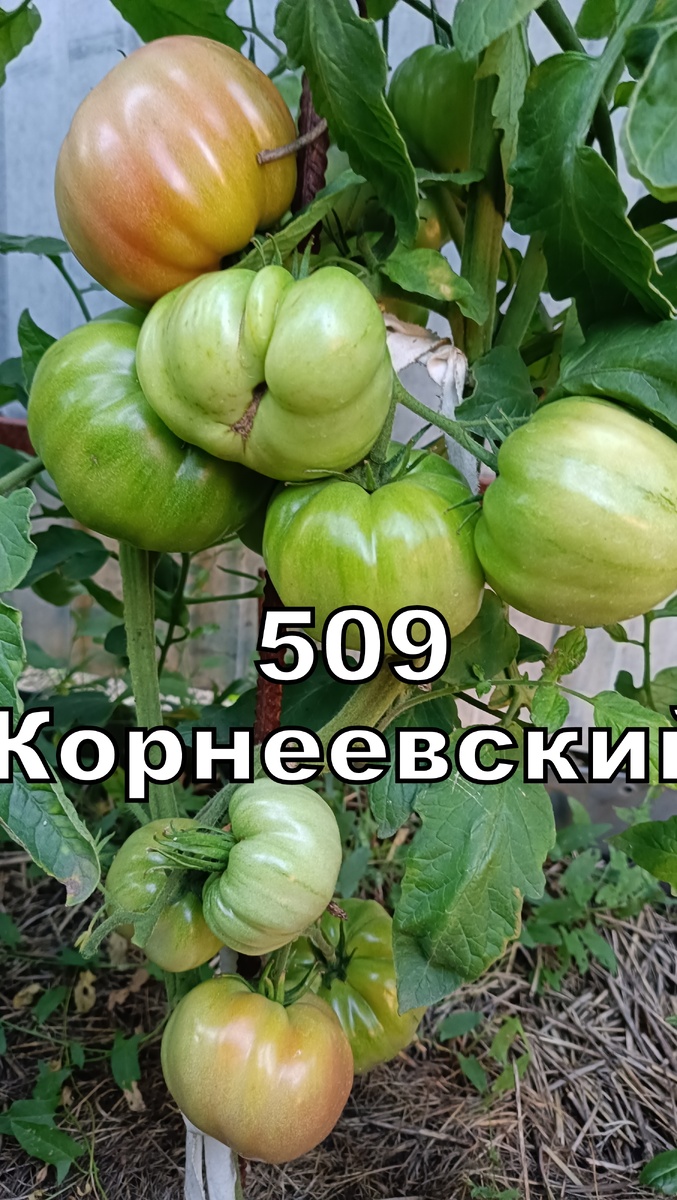 это, знаете ли, не просто помидор, а настоящий тепличный богатырь!Этот сорт – высокорослый.Средний вес помидорки Корнеевского Розового – около 500 грамм. Но это, как говорится, в среднем. Встречаются экземпляры и под 800 грамм! А вкус! Мякоть мясистая, сладкая, с легкой кислинкой Индетерминантный, среднеранний сорт. Куст 120-130 см. Плоды плоскоокруглые. Цвет бордовый, с тёмно-зелёными полосками. Масса 200-300 гр. Мякоть нежная, сладкая, бордового цвета. Коллекционный сорт, среднеспелый, индетерминантный, высотой до 170см в теплице. Куст тонкого строения, листья простые, сильнорассеченные, все приспущены вниз, занимает мало места. Лучше формировать в 2 стебля. Кисти простые, формируются через 3 листа, в которых 4-6 плодов, весом 100-300г. Плоды овально-сердцевидной формы с ребрышками на плечиках, кирпично-бронзового цвета. Мякоть плотная, мясистая, маслянистая, малосемянная, кожица тонкая, но не растрескивается. Вкус очень и очень сладкий с нежнейшей кислинкой, которая делает вкус нас