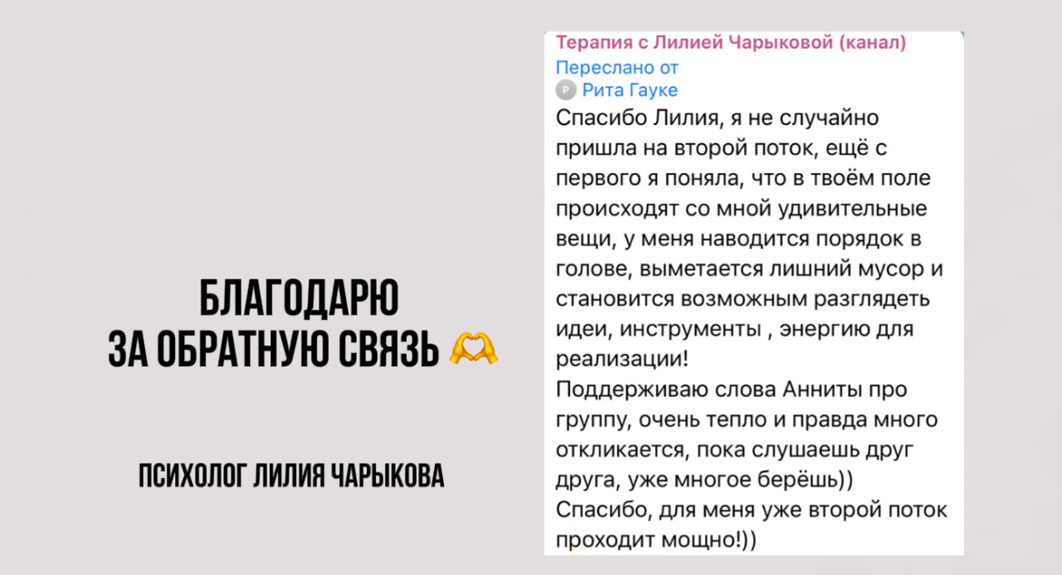 Рита, кстати, за первый поток группы со мной выросла в деньгах, а во второй провела марафон в своем блоге, собрала на игру, получила новых клиентов, которые сами спрашивают как к ней попасть на консультацию. Но так не у всех. А только у тех кто приходит и работает. Кто-то приходит ко мне на две встречи и говорит потом: «Мне психолог не помог». Ну да, вы ж даже не дали себе шанса. А кто-то за 6 встреч со мной начинает зарабатывать в 2 раза больше с двумя детьми на руках. Вывод: сделать над собой усилие и дать себе шанс, я за вас этого сделать не могу.