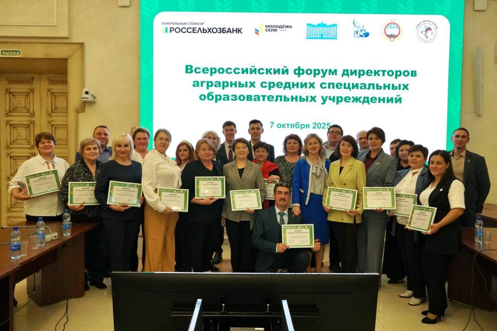7 октября 2025 года в Общественной палате РФ АО «Россельхозбанк» совместно с Государственной Думой РФ, Министерством Просвещения РФ, Союзом директоров СПО России, Российским союзом сельской молодёжи провели Всероссийский форум директоров аграрных средних специальных образовательных учреждений. Мероприятие проходит уже второй год подряд. В этот раз оно объединило более 80 руководителей аграрных СПО из 30 субъектов РФ: от Луганской Народной Республики до Камчатского края. Также в форуме приняли участие крупные аграрные объединения: АО «Малино», ГК «АгроТерра», холдинг «СТЕПЬ» и др. «Решение кадрового вопроса в агропромышленном комплексе, это работа на всех уровнях образования от детского сада до академической науки. И СПО один из важнейших ресурсов для обеспечения АПК высокопрофессиональными кадрами среднего звена. Именно выпускники этих учебных учреждений будут в будущем работать «на земле» и создавать фундамент кадрового резерва отрасли. Объединяя руководителей аграрных СПО мы создаем