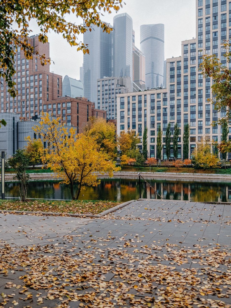 🖇Осенняя магия парка «Красногвардейские пруды» 🔵Этот парк обязателен к посещению именно осенью. Начните прогулку от Звенигородского шоссе: отсюда открывается потрясающий вид на Москва-Сити, обрамлённый золотом кленовых крон. Парк украшают три уютных пруда. Пересеките Шмитовский проезд, чтобы найти третий из них — идеальное место для чашечки кофе с живописным видом. 📸 Оксана Гильдеева Московские истории 🎞️ Лучшие места и истории 👈🏻