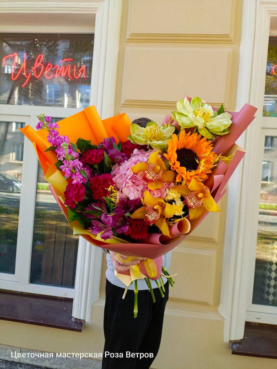 Персиковый рай Стоимость: 7980 р Размер: 60*50 Подсолнух Роза Орхидея Гортензия Гвоздика Матиола Альстромерия Декор Зелень Упаковка Оформить заказ можно по телефону или написав на ватсап +7 999 009 75 00 Комендантский пр.9к2 TPK Модный променад +7 921 953 53 92 Весельная 7/10 +7 931 636 53 53 ул. Бонч-Бруевича 3 - Доставка по СПб