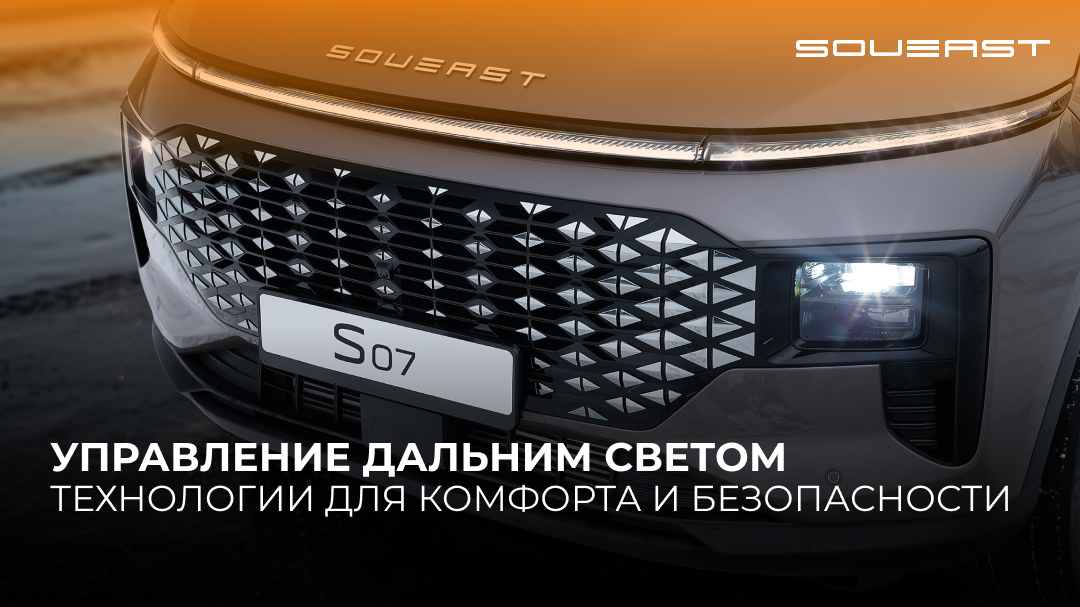 Осенью темнеет всё раньше — и дорога требует особого внимания. Хорошая видимость — это не только комфорт, но и безопасность. В кроссоверах SOUEAST за это отвечает технология автоматического управления дальним светом. IHC: точность света в движении В SOUEAST S07 (Premium 4WD) работает система IHC (Intelligent High Beam Control). Она анализирует дорожную обстановку в реальном времени: фиксирует встречные и попутные автомобили, оценивает уровень освещения и дорожные условия. Когда дорога пуста, система включает дальний свет, обеспечивая максимальную видимость. Как только появляются другие участники движения — фары автоматически переключаются на ближний. Всё происходит мягко и незаметно — без ослепления встречных водителей и без необходимости отвлекаться на переключатели. Эта функция особенно полезна при длительных поездках по загородным трассам и в условиях переменного освещения — когда дорогу то освещают фонари, то нет, а скорость высокая. IHC помогает снизить усталость глаз и сохранить